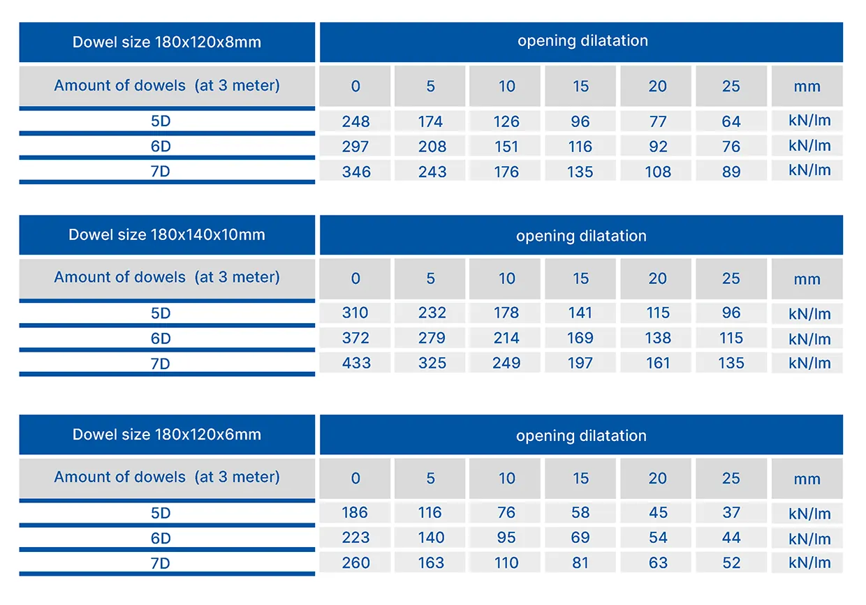 • Load capacity about expansion joints depending on amount